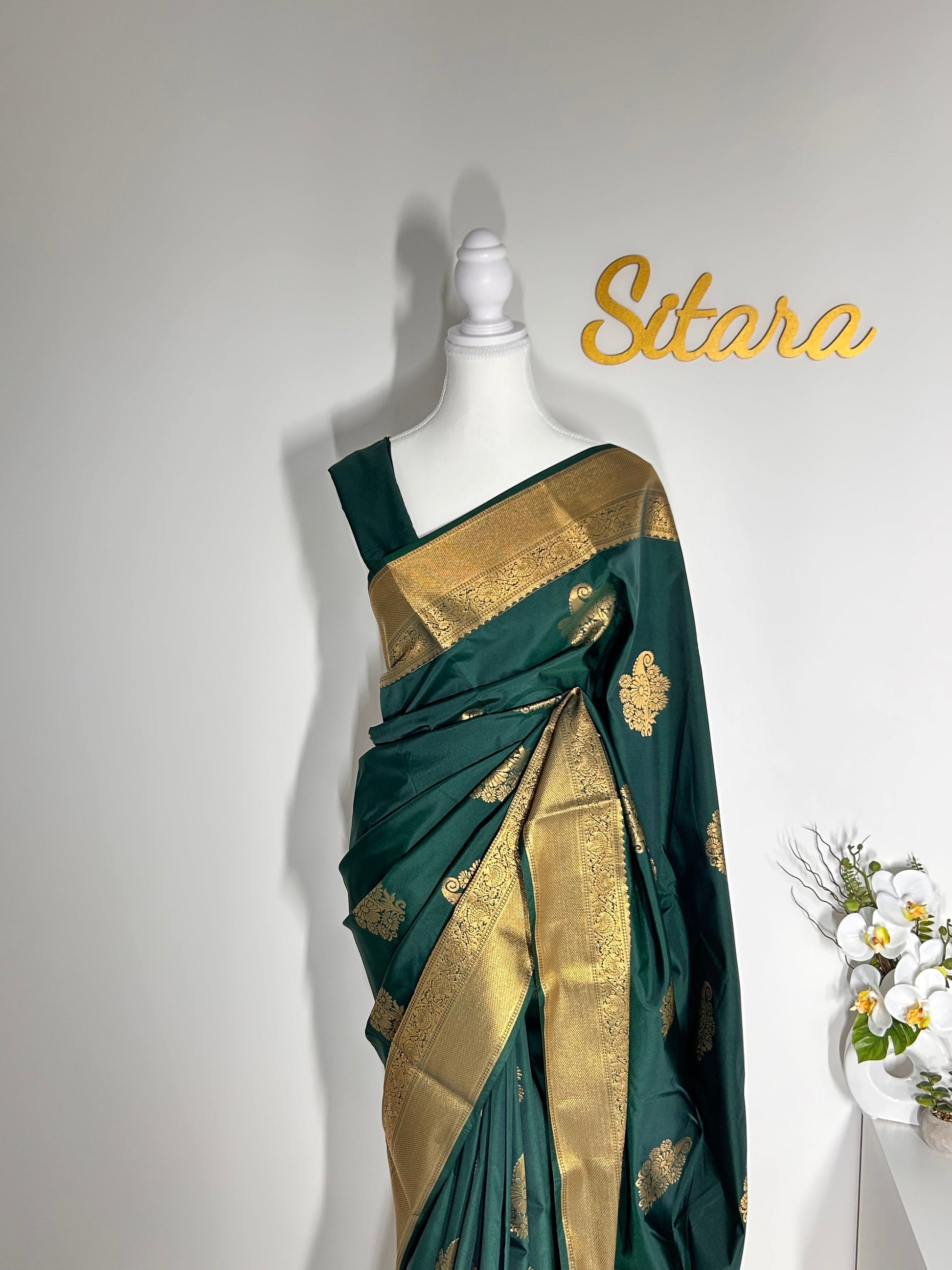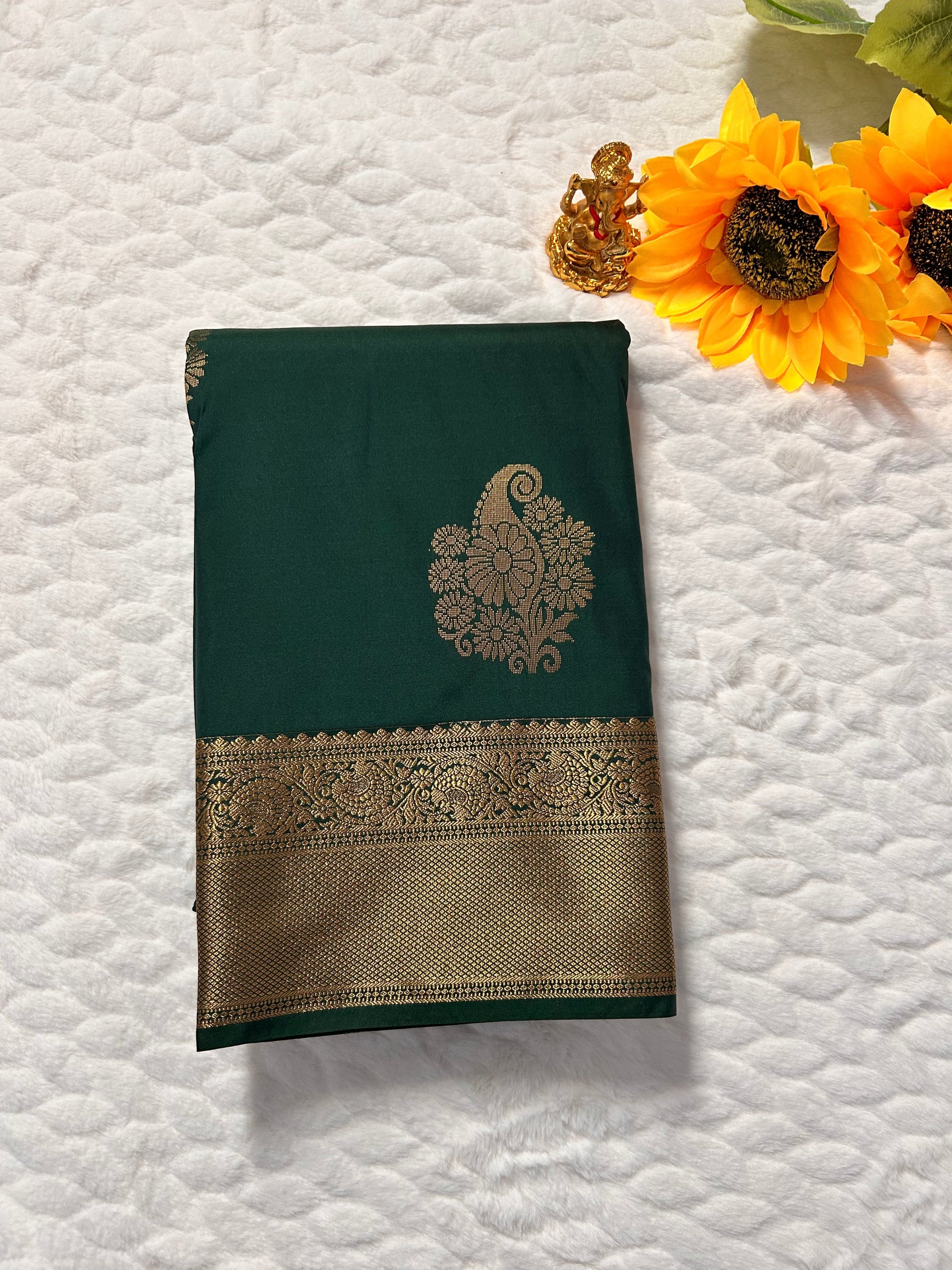 Kanchipuram Premium Semi Silk Saree – Bottle Green